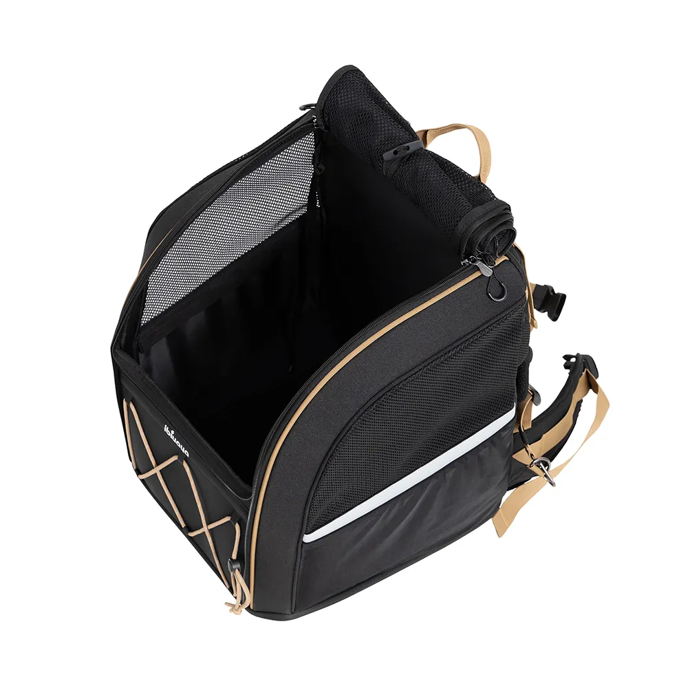 Dodatkowe odblaski dla lepszej widoczności w ciemności i bezpieczeństwa Twojego zwierzaka, mnóstwo miejsca na schowanie rzeczy, jak kurtki, miski dla psa, smakołyki i wiele innych, możliwość zamiany plecaka w transporter do samochodu – idealne rozwiązanie w trakcie podróży autem.
