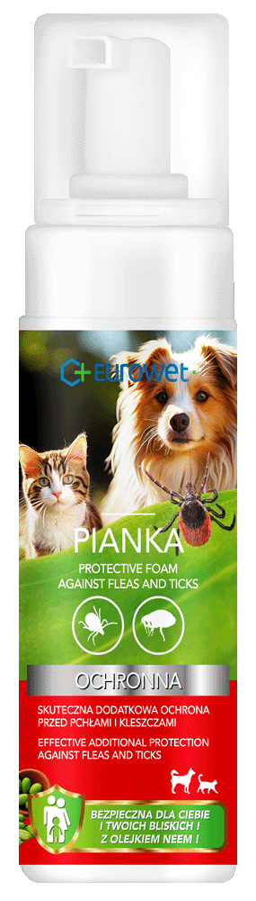 Preparat wspomaga działanie ochronne przed obecnością pcheł i kleszczy na sierści oraz skórze psów i kotów.